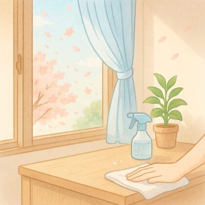 花粉は目に見えないほど細かく、床・棚・壁・カーテン・ベッドの周り・電化製品の上などにも付着しますね。換気のあとは湿った布での拭き取り掃除が効果的です。乾いた布では花粉が舞い上がってしまうので、湿った布でそっと拭き取るだけでも、室内の空気が変わり、過ごしやすさがぐっと違います。花粉症のつらさを少しでも和らげるために、室内環境の管理を丁寧に行うことが、この季節の大切な支援になりますね。